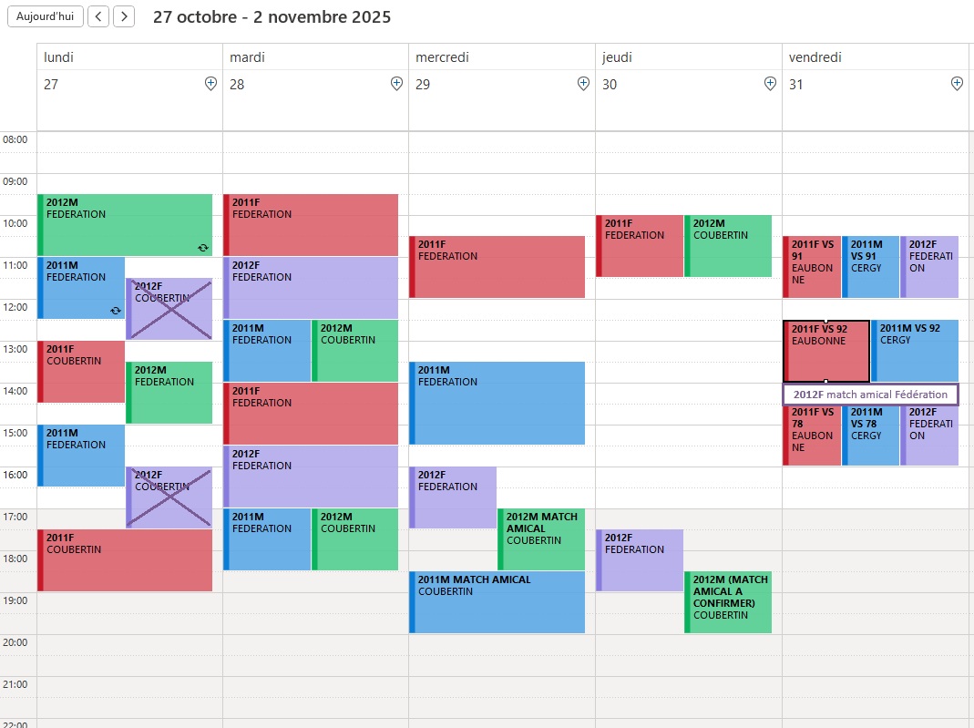 > calendrier des stages et compétitions